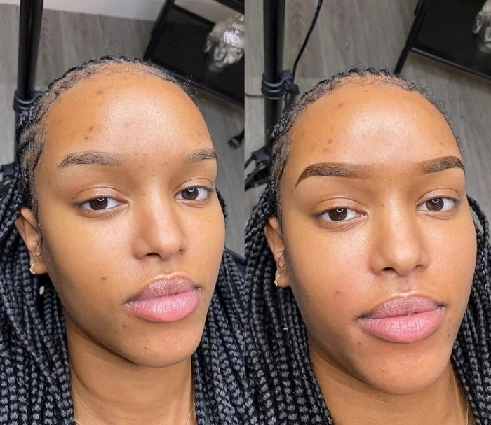 Powdered brows are a semi-permanent cosmetic tattooing technique that creates a soft, shaded effect, similar to a powdered makeup look. Unlike microblading, which uses hair-like strokes, powdered brows are achieved with a machine that deposits pigment into the skin using a pixelated shading method. The procedure takes about 2-3 hours and includes a consultation to determine the best brow shape and color for your face. After the initial appointment, a touch-up session is recommended in 6-8 weeks. Included.